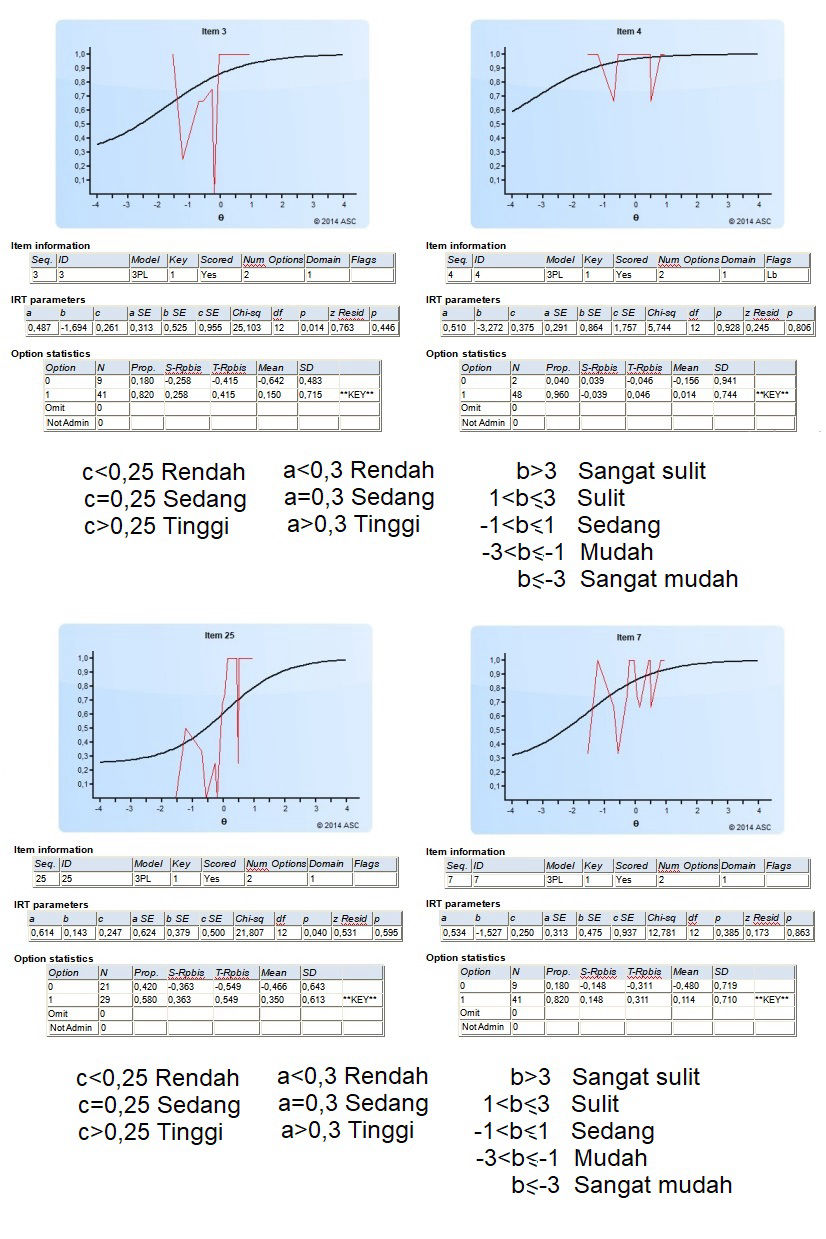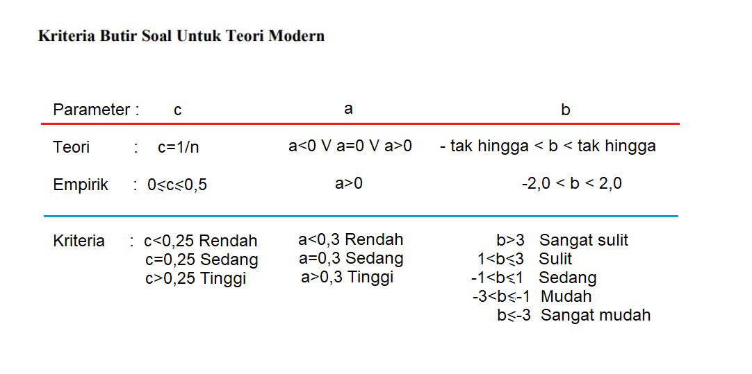 - Karakteristik masing-masing model logistik pada IRT (1PL,2PL,3PL)